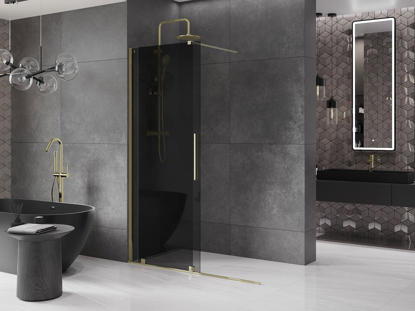 Mexen Velar paroi de douche coulissante Walk-in 160 x 200 cm, graphite 8 mm, dorée - 871-160-000-43-50