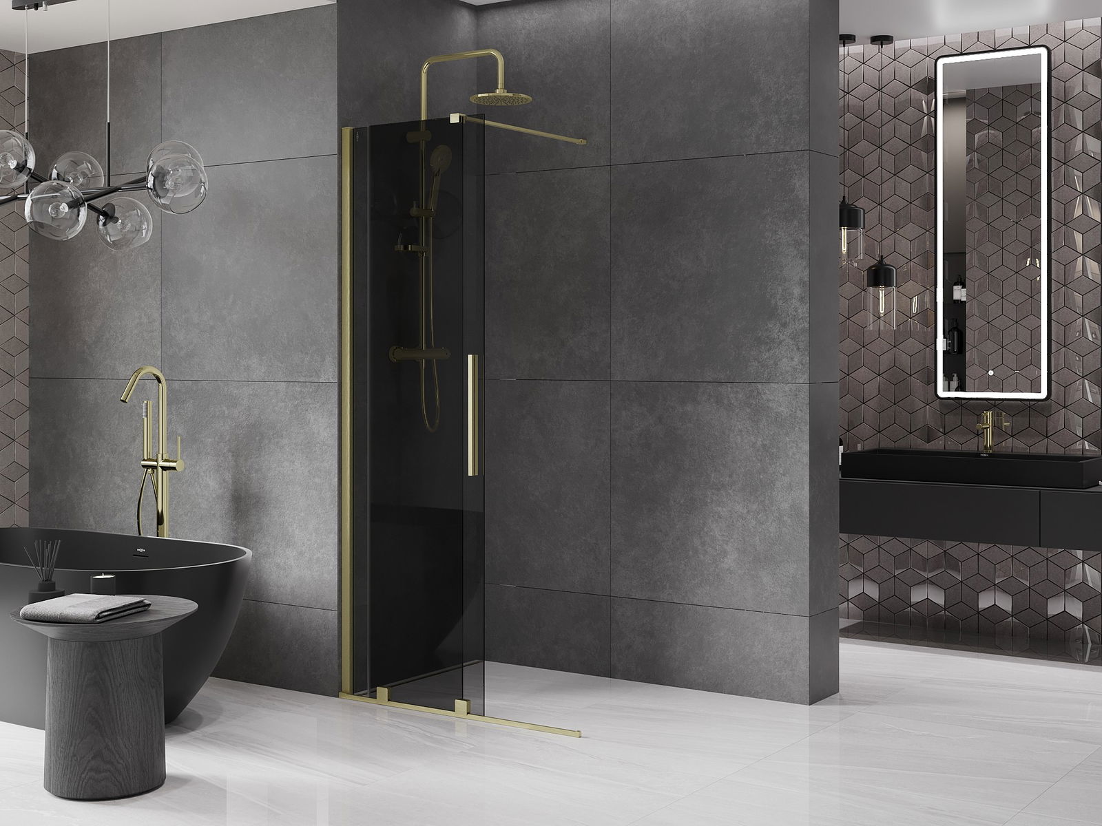 Mexen Velar paroi de douche coulissante Walk-in 85 x 200 cm, graphite 8 mm, or brossé - 871-085-000-43-55