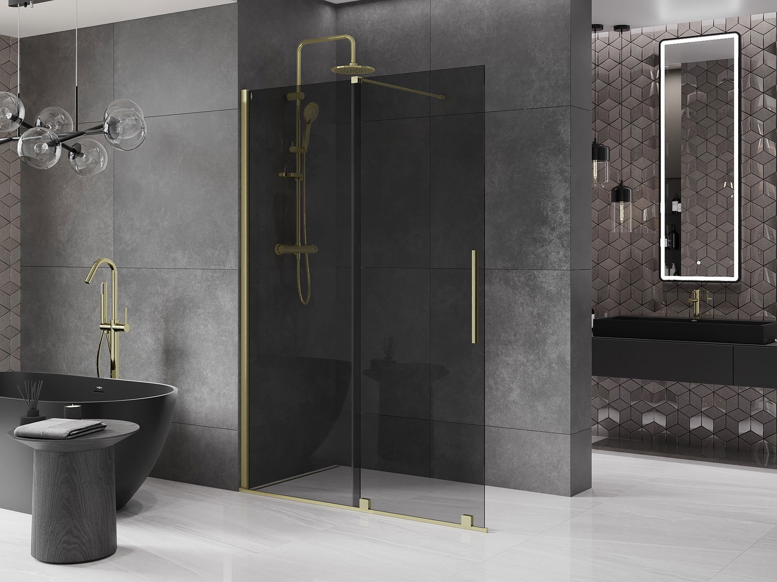 Mexen Velar Paroi de douche coulissante Walk-in 130 x 200 cm, graphite 8 mm, doré brossé - 871-130-000-43-55