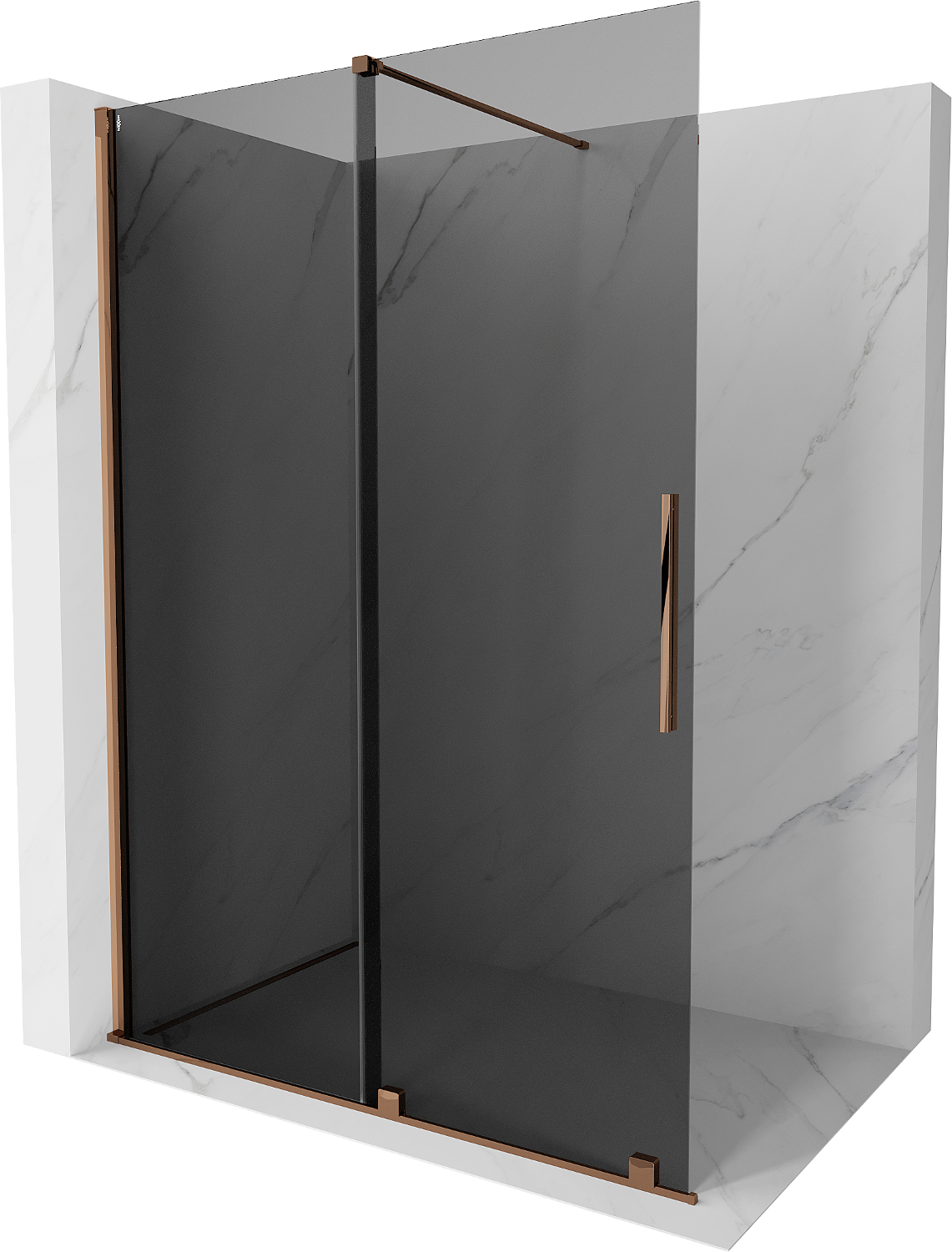 Mexen Velar paroi de douche coulissante Walk-in 130 x 200 cm, graphite 8 mm, or rose - 871-130-000-43-60