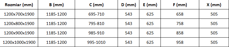 Taille: 120x100 cm (porte 120 cm, paroi 100 cm)