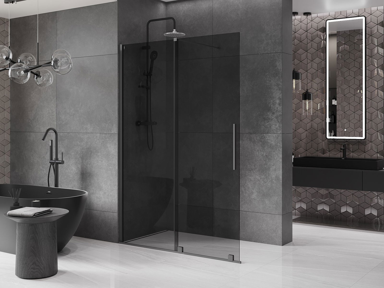 Mexen Velar paroi de douche coulissante Walk-in 150 x 200 cm, graphite 8 mm, métal canon - 871-150-000-43-95