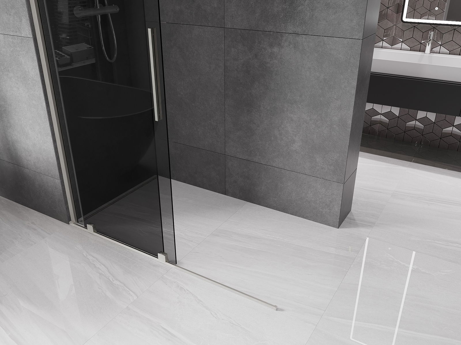Mexen Velar paroi de douche coulissante Walk-in 140 x 200 cm, graphite 8 mm, nickel brossé - 871-140-000-43-97