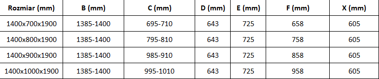 Taille : 140x80 cm (portes 140 cm, paroi 80 cm)