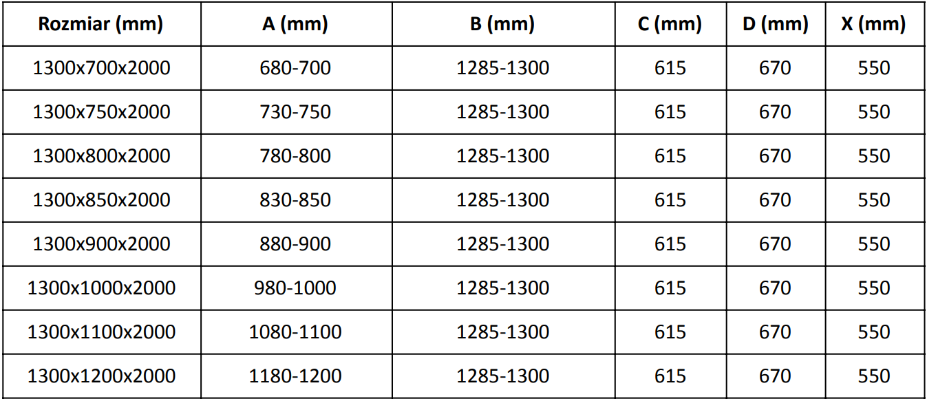 Taille : 130x70 cm (portes 130 cm, paroi 70 cm)