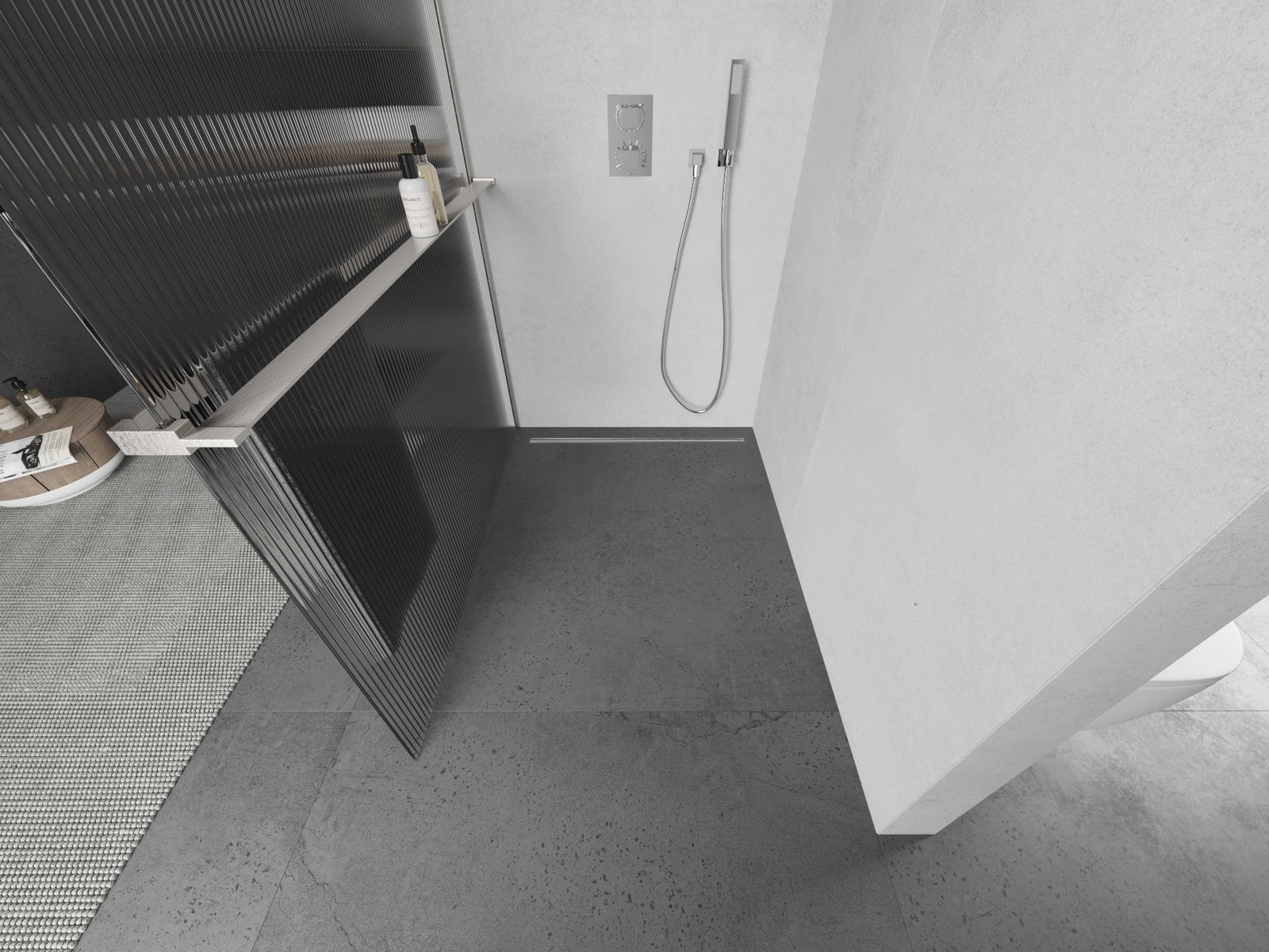 Mexen Kioto+ L cloison de douche avec étagère Walk-in 120 x 200 cm, rayures, nickel brossé - 800-120-123-97-09