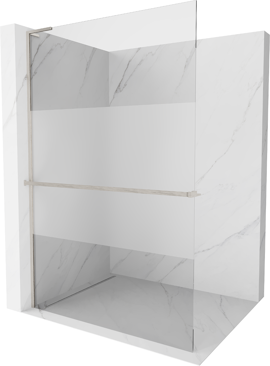 Mexen Kioto+ L paroi de douche avec étagère Walk-in 70 x 200 cm, transparent/givre, nickel brossé - 800-070-123-97-35