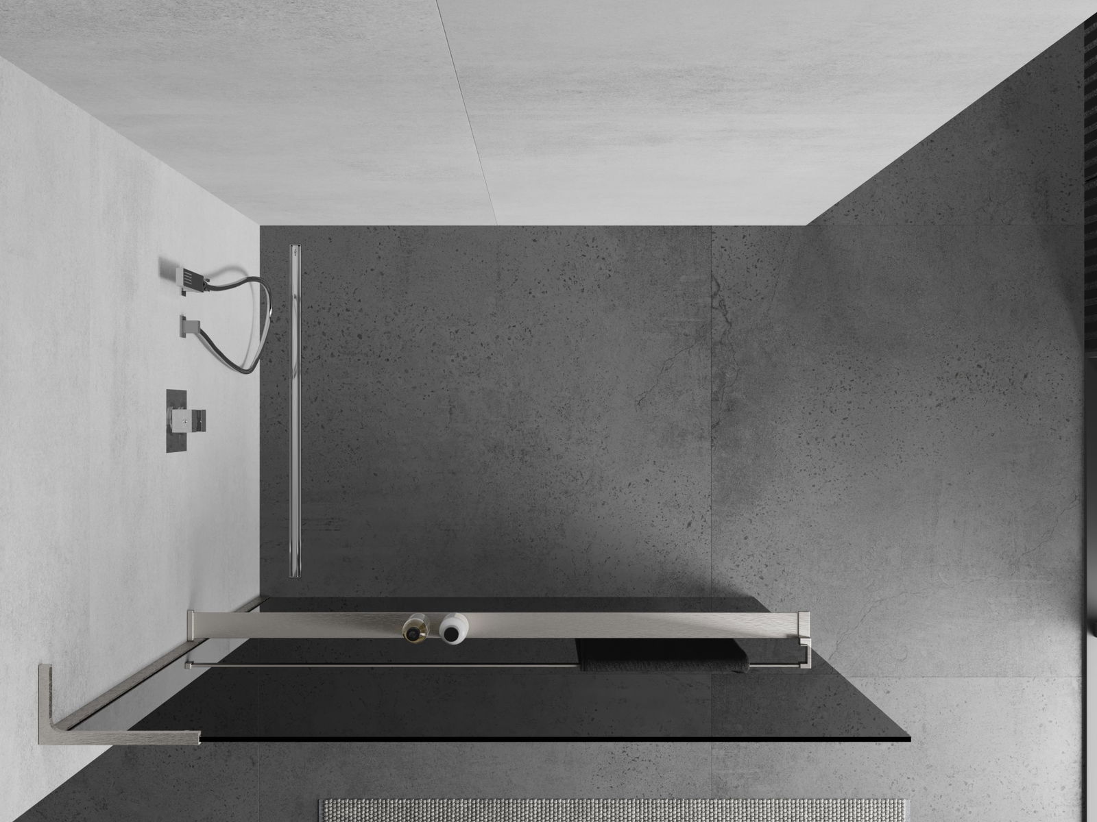 Mexen Kioto+ L paroi de douche avec étagère Walk-in 110 x 200 cm, graphit, nickel brossé - 800-110-123-97-40