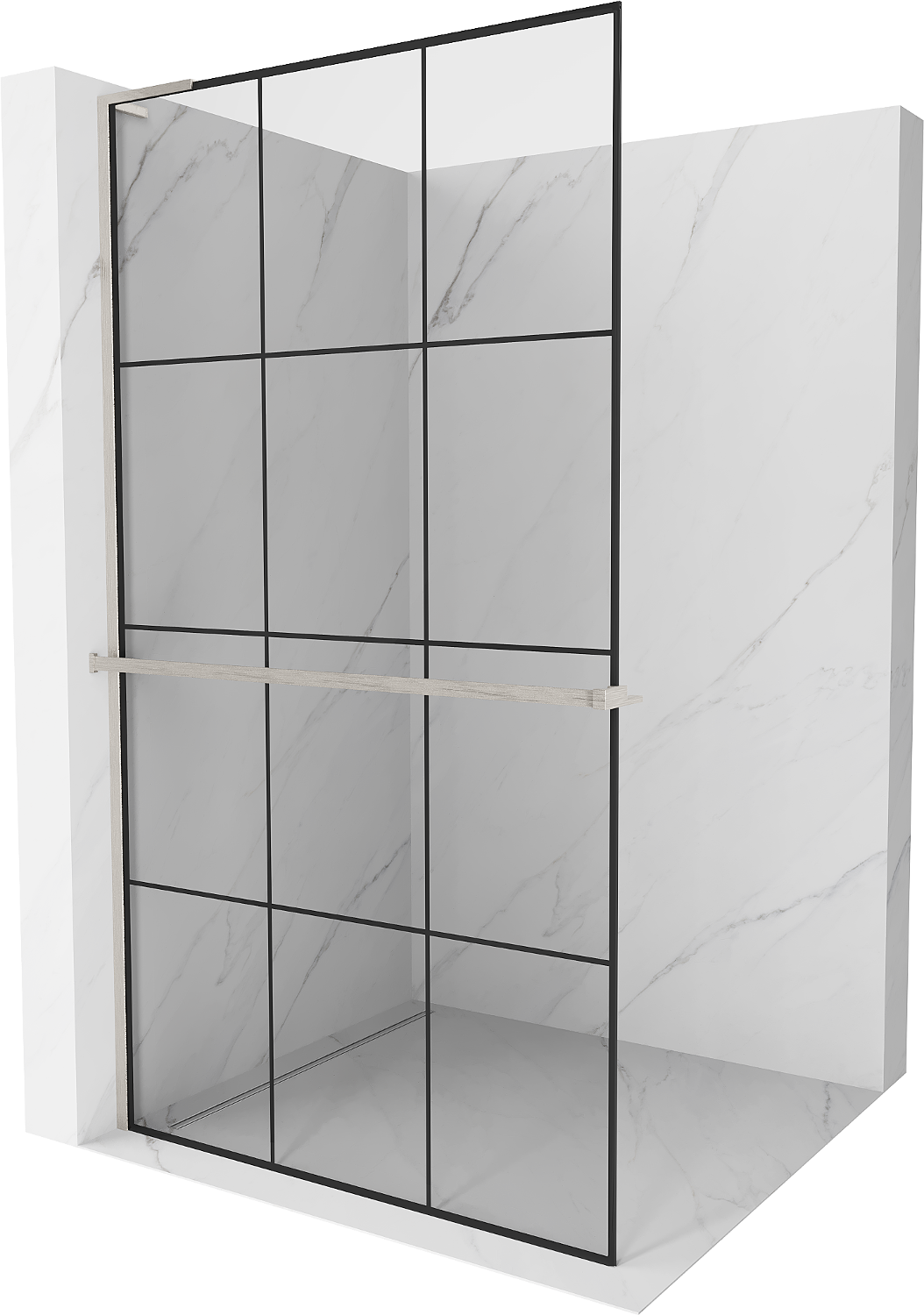 Mexen Kioto+ L paroi de douche avec étagère Walk-in 110 x 200 cm, grille noire, nickel brossé - 800-110-123-97-77