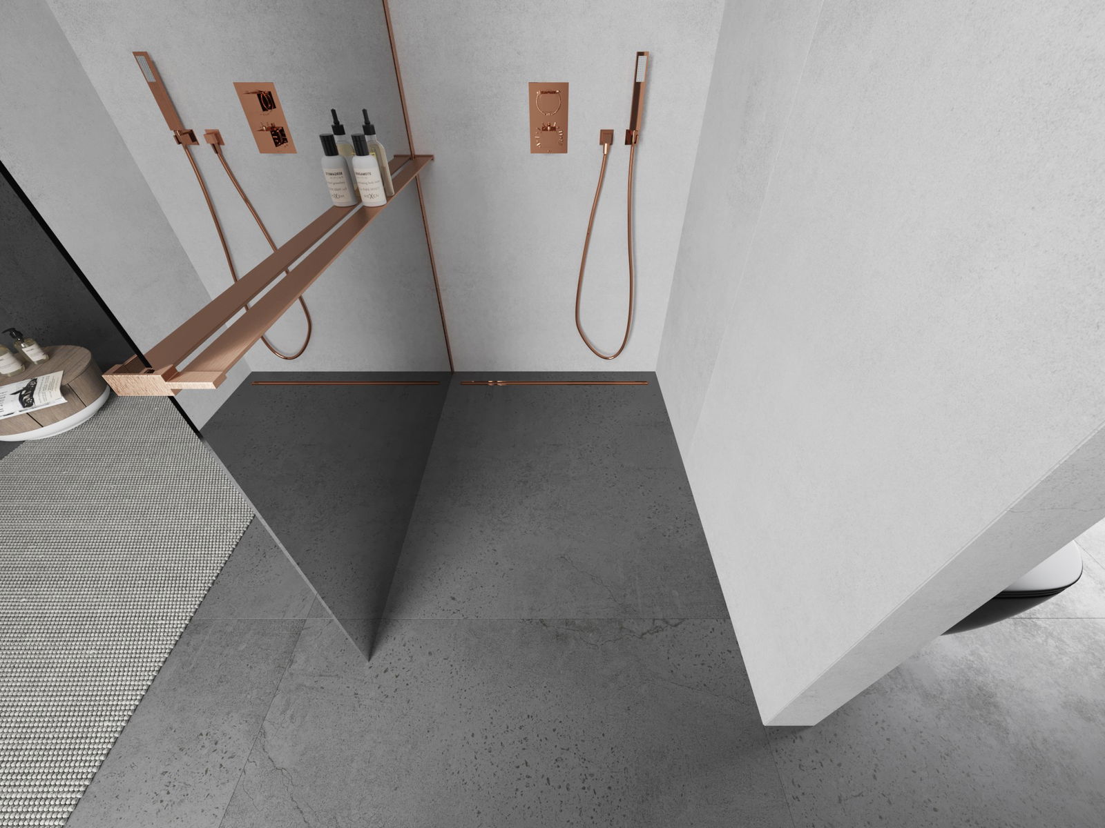 Mexen Kioto+ L paroi de douche avec étagère Walk-in 70 x 200 cm, miroir, cuivre brossé - 800-070-123-65-50