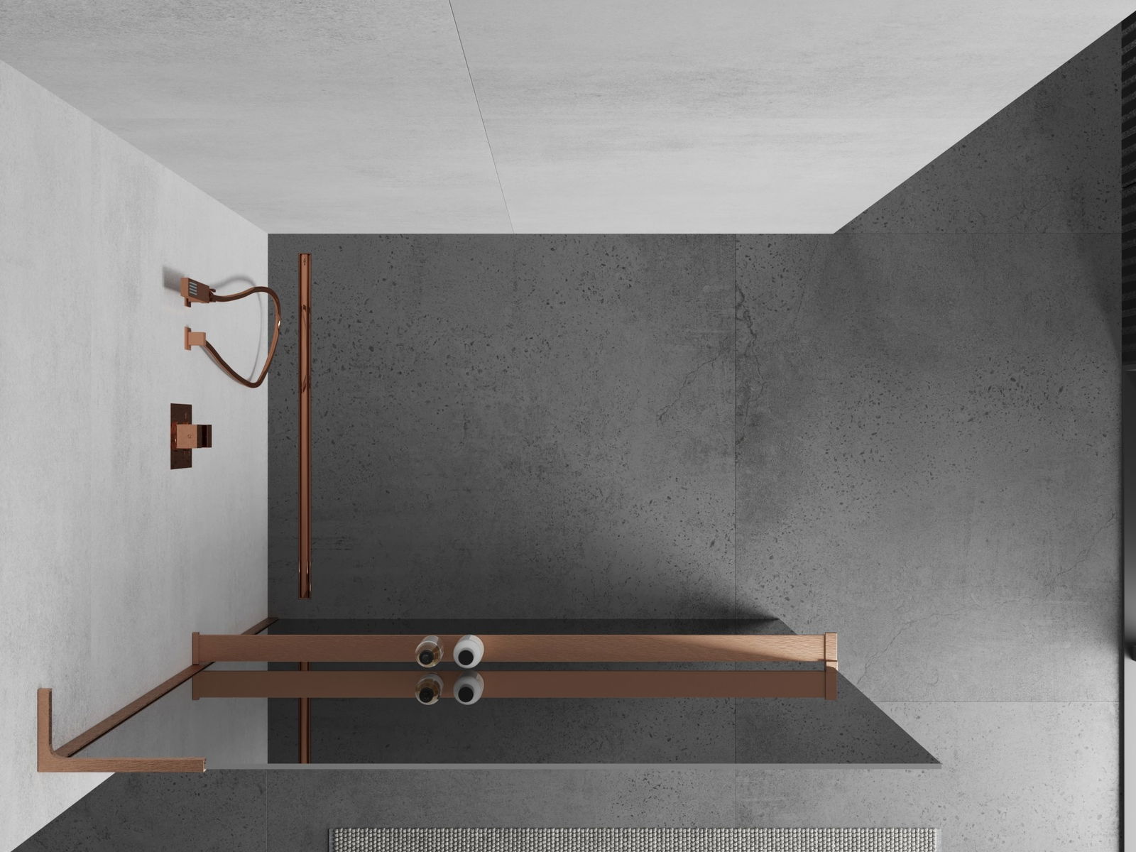 Mexen Kioto+ L paroi de douche avec étagère Walk-in 80 x 200 cm, miroir, cuivre brossé - 800-080-123-65-50