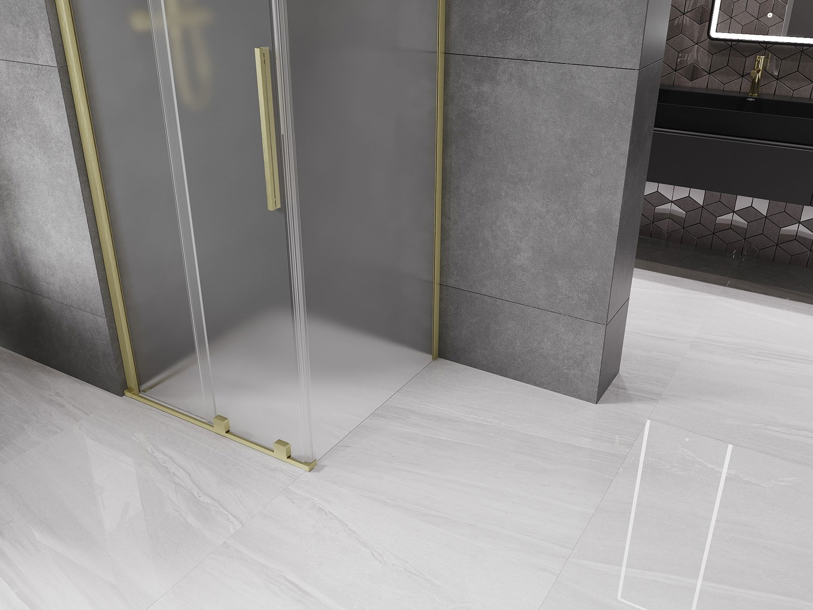 Mexen Velar cabine de douche à porte coulissante 110 x 110 cm, givrée, or brossé - 871-110-110-31-55