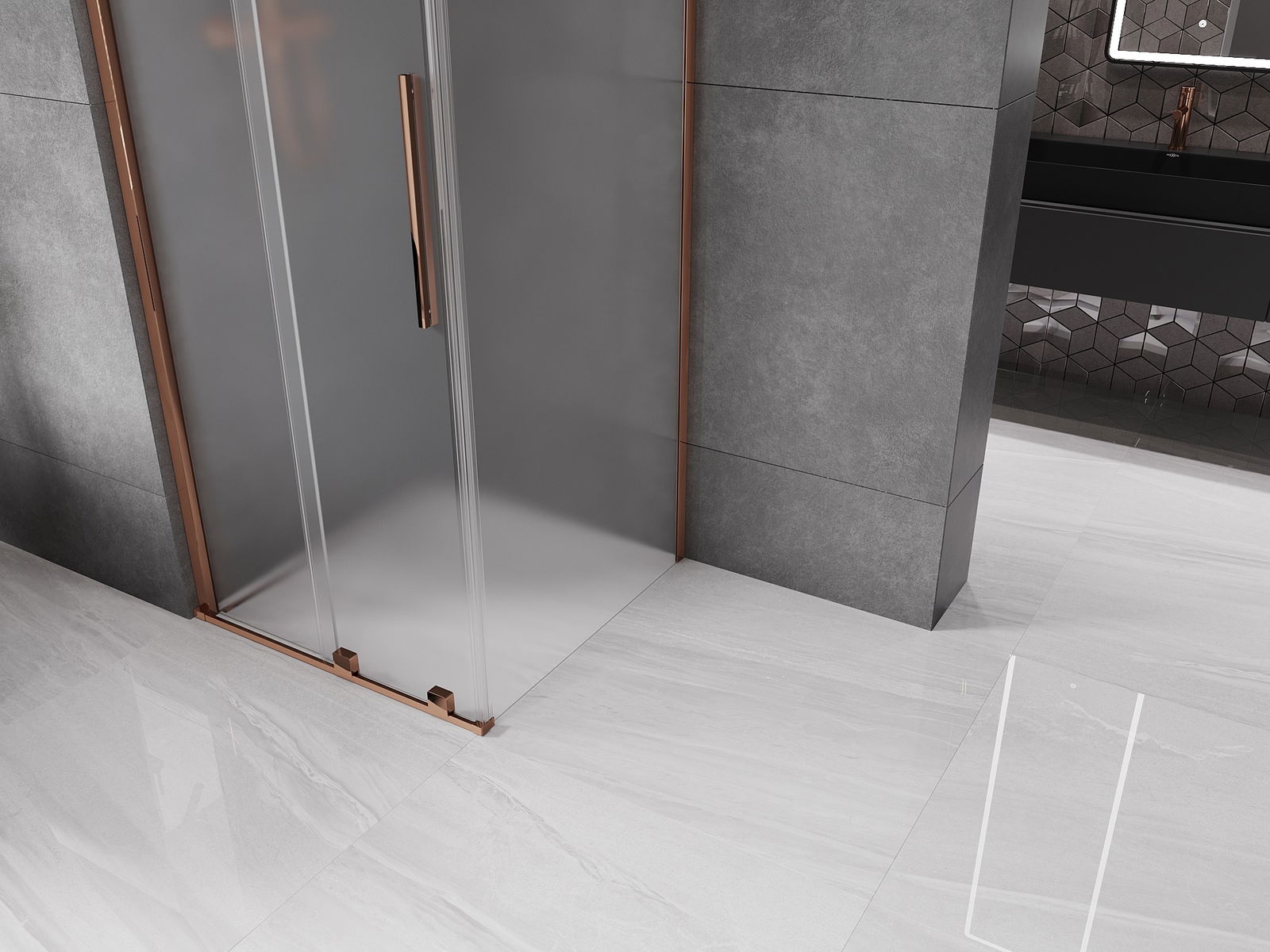 Mexen Velar cabine de douche coulissante 100 x 100 cm, givre, or rose - 871-100-100-31-60