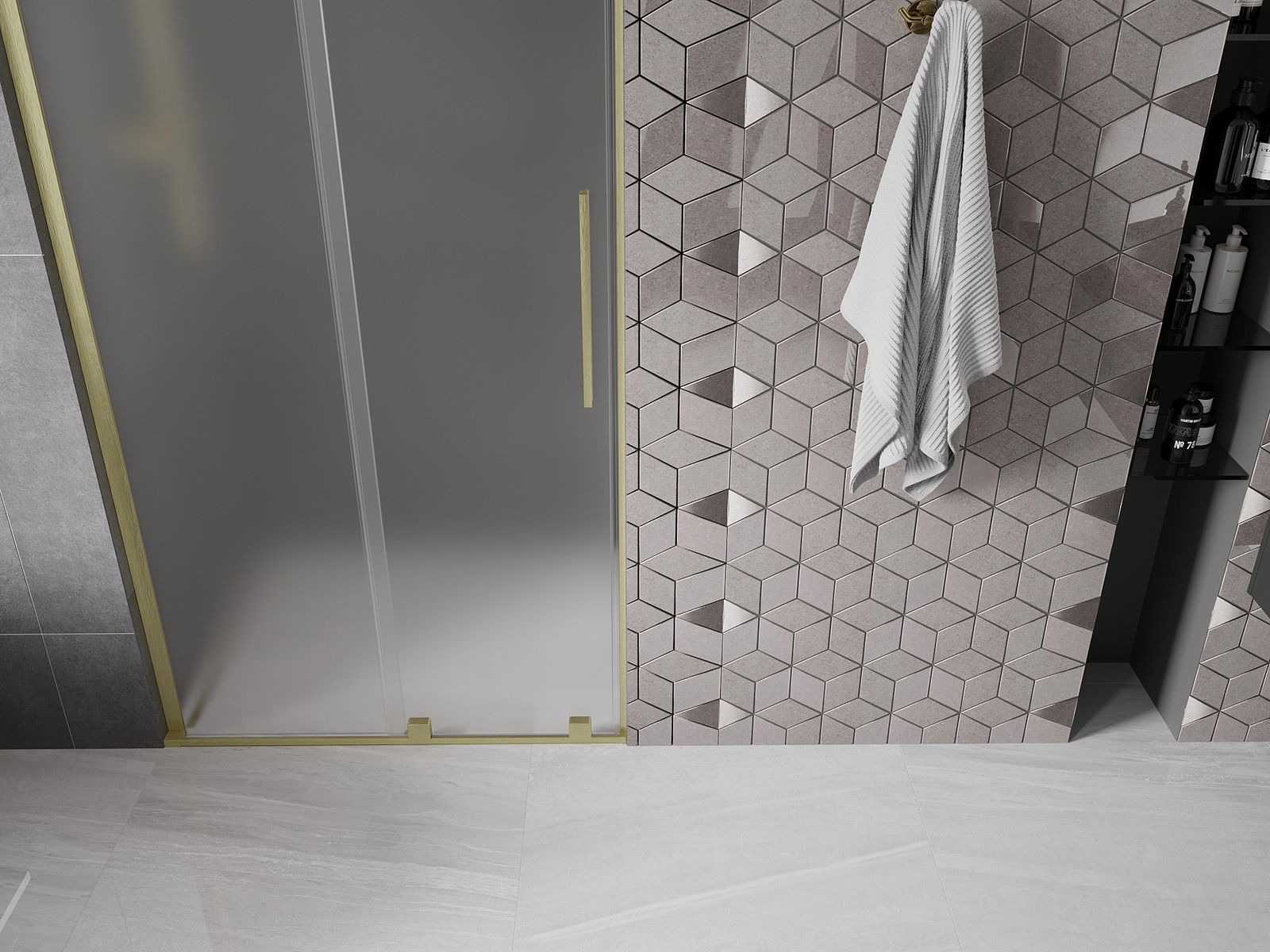 Mexen Velar L portes de douche coulissantes 90 cm, givré, or brossé - 871-090-003-31-55