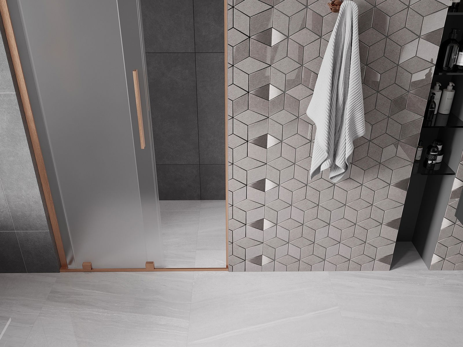 Poignée pratique et confortable en acier inoxydable. La forme moderne associée à une finition assortie à la couleur des profilés confère à l'ensemble un aspect moderne et élégant, soulignant l'esthétique de chaque salle de bain.