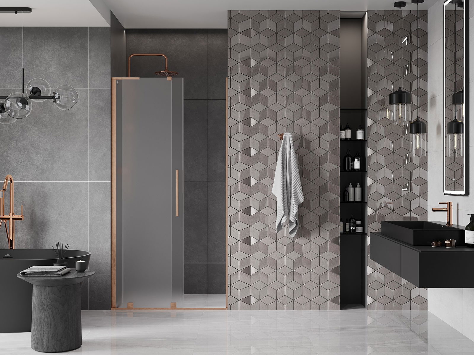 Mexen Velar L porte de douche coulissante 120 cm, givre, cuivre brossé - 871-120-003-31-65