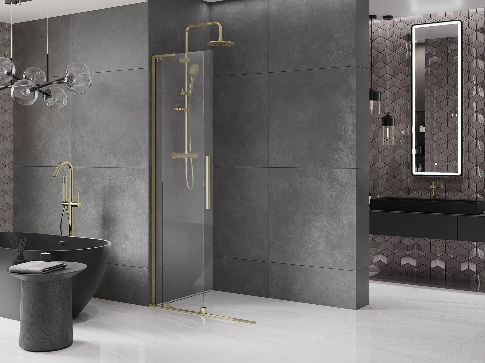 Mexen Velar L paroi de douche coulissante Walk-in 100 x 200 cm, transparent 8 mm, or - 871-100-003-03-50