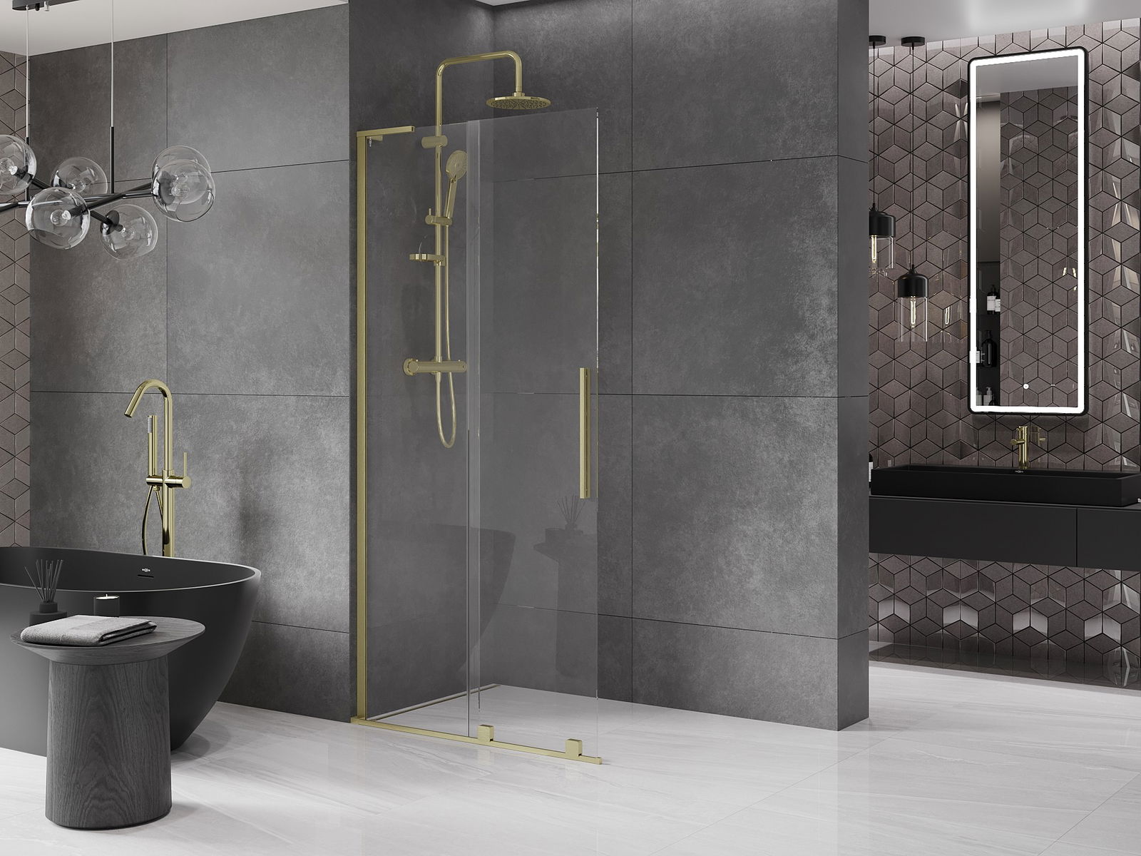 Mexen Velar L paroi de douche coulissante Walk-in 110 x 200 cm, transparent 8 mm, or brossé - 871-110-003-03-55