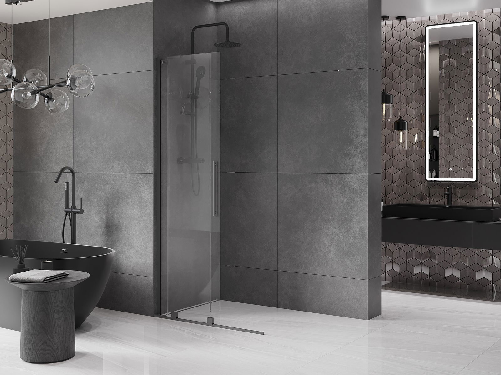 Mexen Velar L paroi de douche coulissante Walk-in 100 x 200 cm, transparent 8 mm, gun metal - 871-100-003-03-95