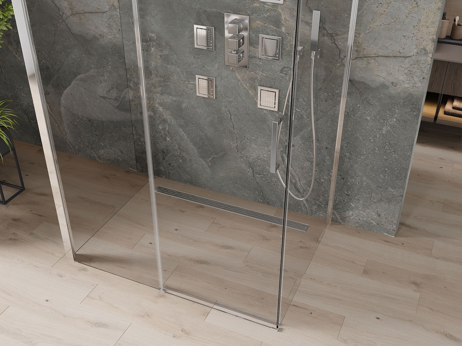 Selon les besoins, le produit peut être installé à la fois sur le receveur de douche et directement sur le sol. La méthode d'installation universelle permet d'adapter le produit à différents types de salles de bains et configurations d'espace.
