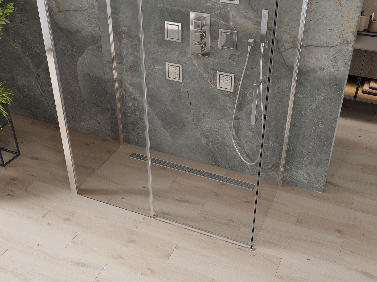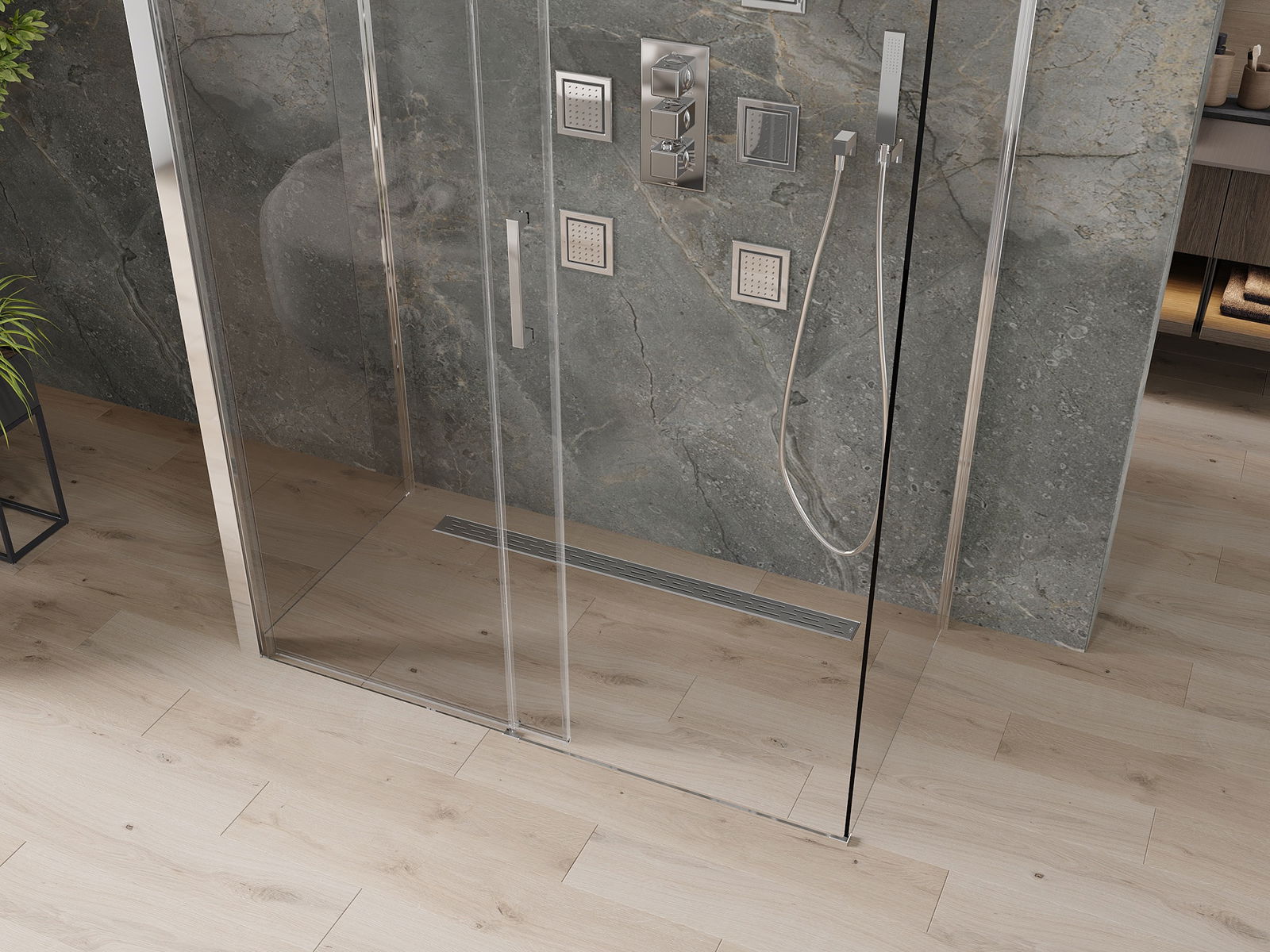 Mexen Omega-3S cabine de douche à 3 parois, coulissante 140 x 80 cm, transparent, chrome - 825-140-080-01-00-3S