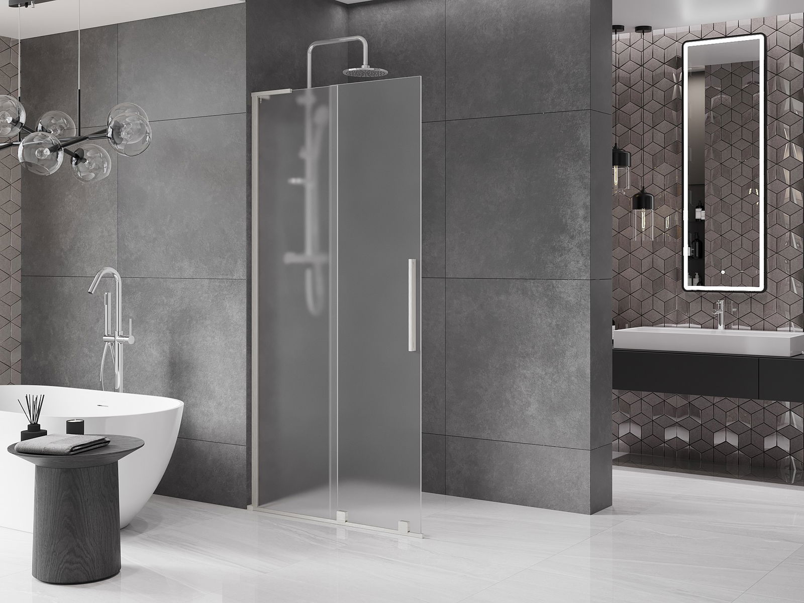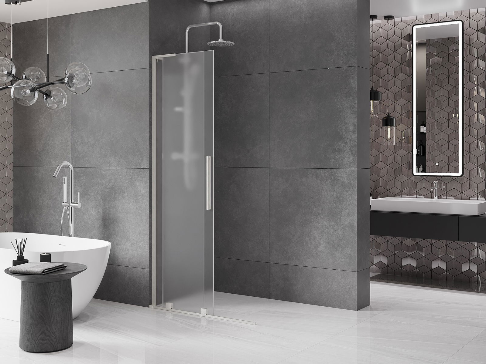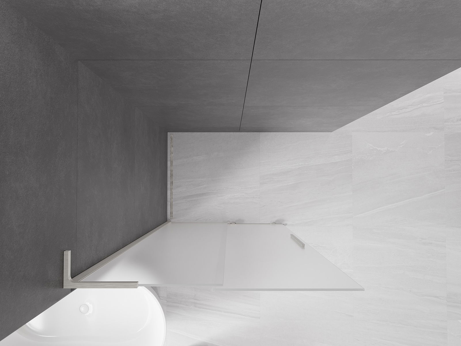 Poignée pratique et confortable en acier inoxydable. La forme moderne associée à une finition assortie à la couleur des profilés confère à l'ensemble un aspect moderne et élégant, soulignant l'esthétique de chaque salle de bain.