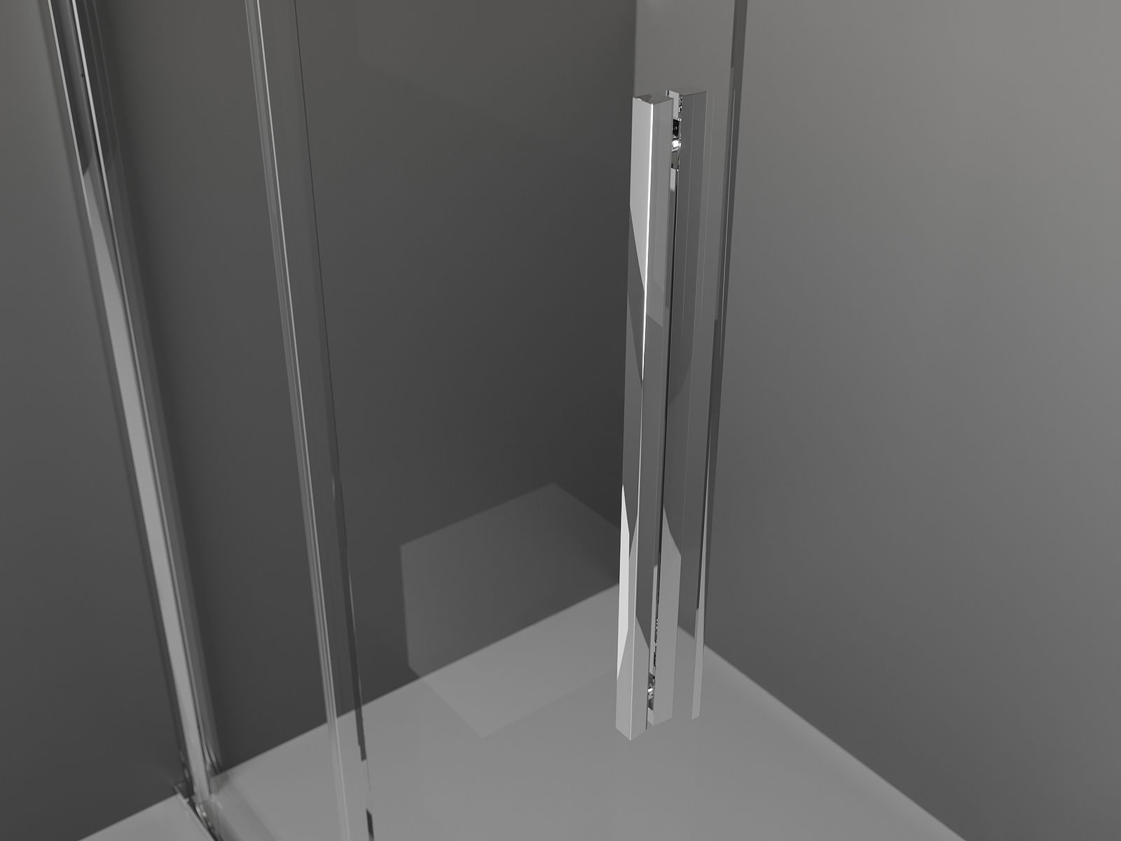 Poignée pratique et confortable en acier inoxydable. La forme moderne associée à une finition assortie à la couleur des profilés confère à l'ensemble un aspect moderne et élégant, soulignant l'esthétique de chaque salle de bain.
