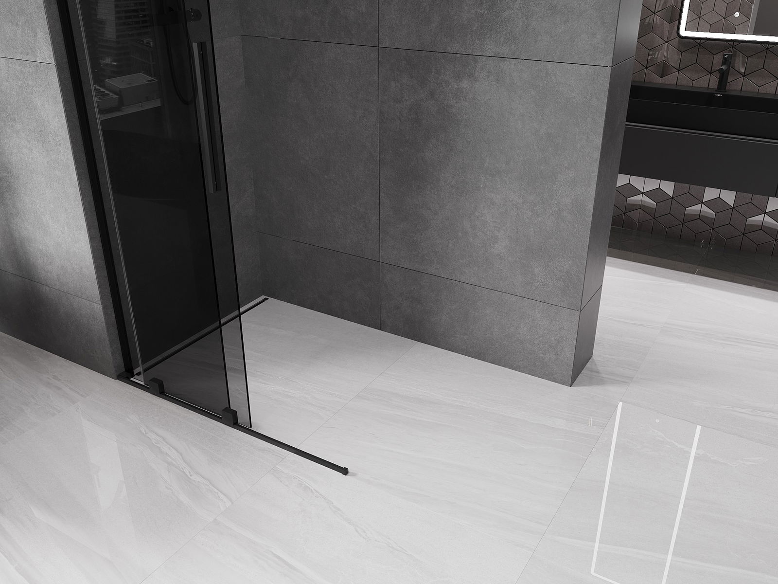 Mexen Velar L paroi de douche coulissante Walk-in 100 x 200 cm, graphite 8 mm, noir - 871-100-003-43-70