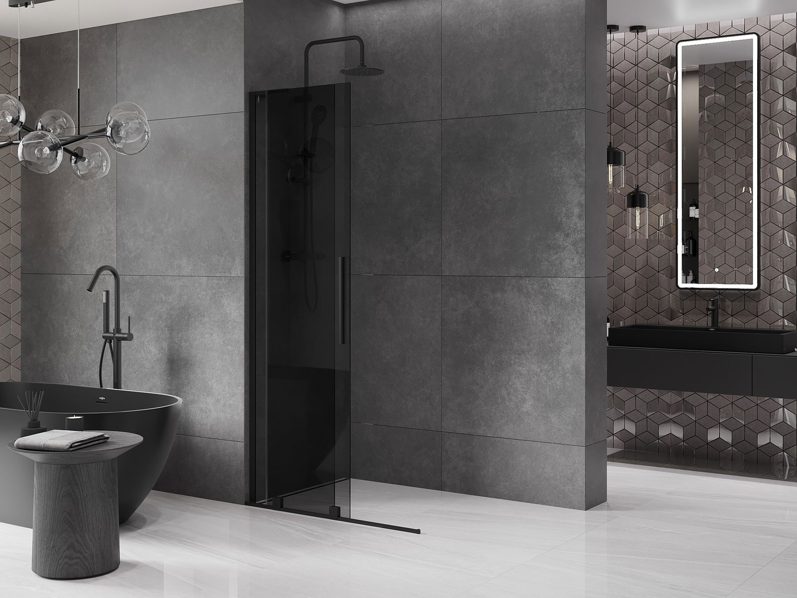 Mexen Velar L paroi de douche coulissante Walk-in 120 x 200 cm, graphite 8 mm, noire - 871-120-003-43-70