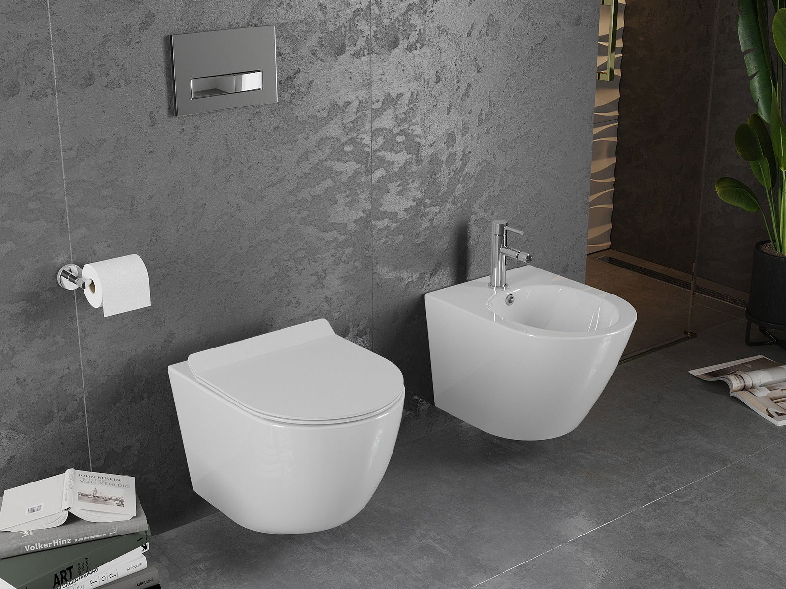 L'ensemble comprend des charnières métalliques solides qui garantissent une fixation stable de l'abattant à la cuvette. Cette solution pratique permet d'ajuster facilement l'abattant à la forme et aux dimensions des toilettes, pour un confort d'utilisation optimal.