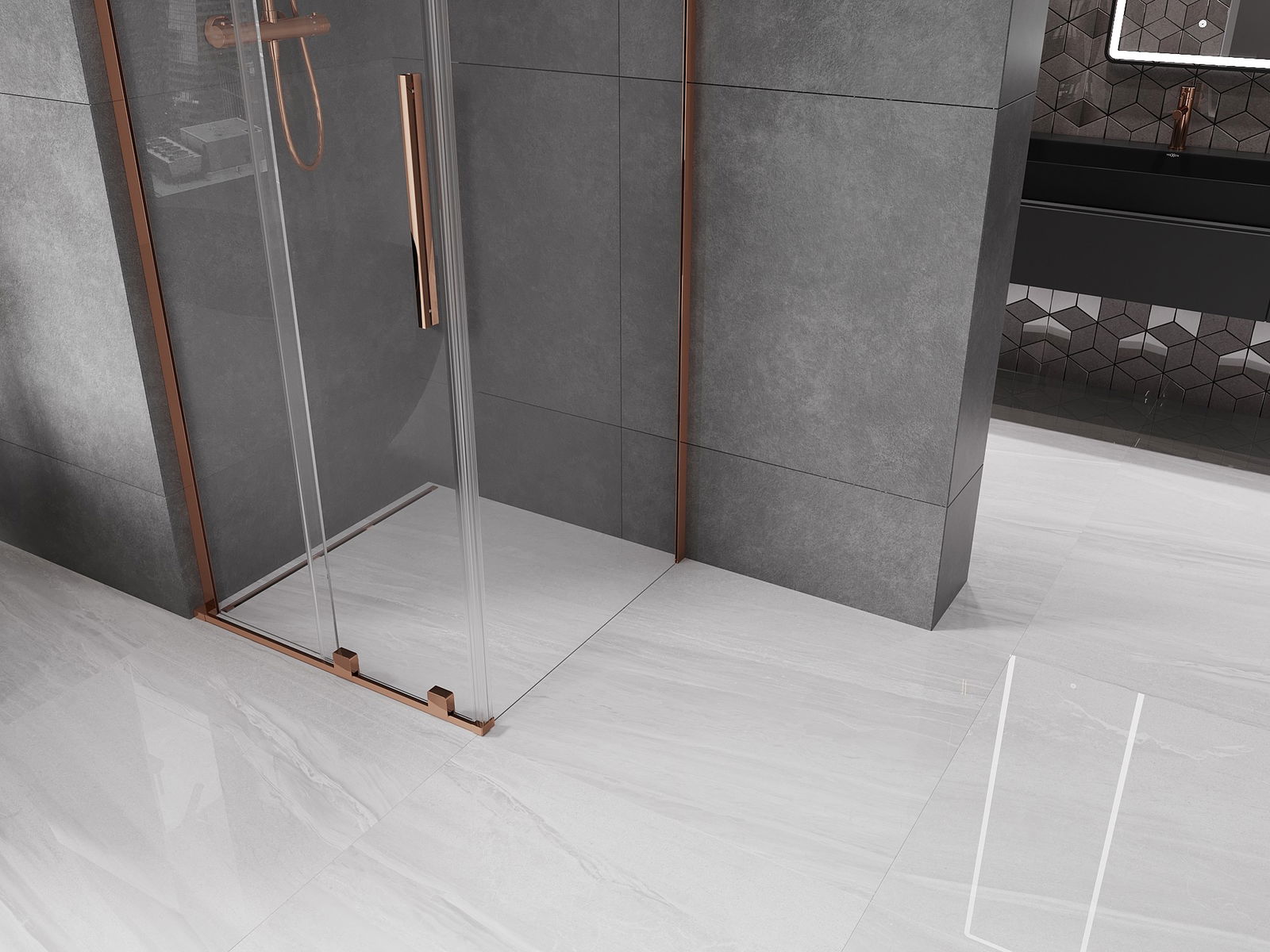 Mexen Velar L cabine de douche coulissante 90 x 90 cm, transparent, or rose - 871-090-090-03-60