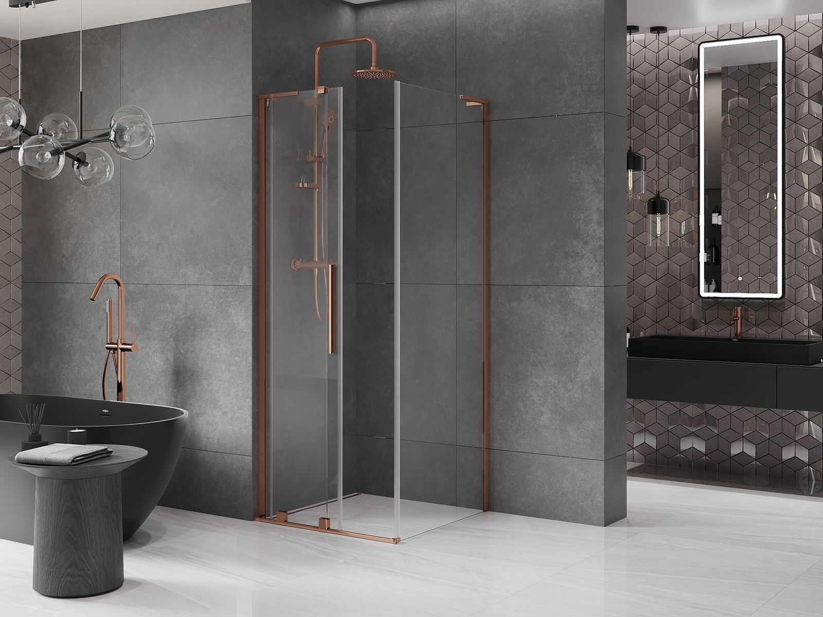 Mexen Velar L cabine de douche coulissante 100 x 100 cm, transparent, or rose - 871-100-100-03-60