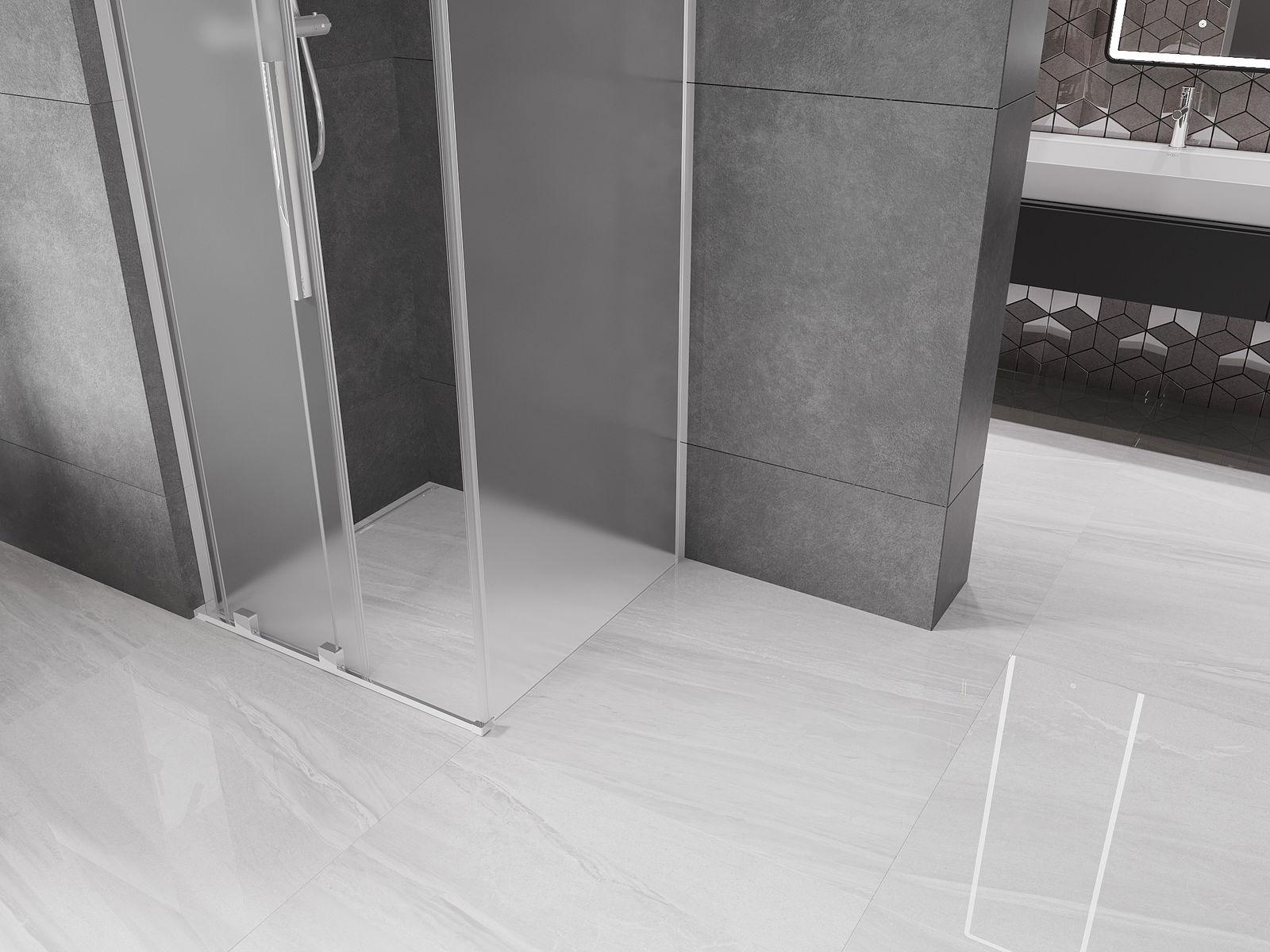 Mexen Velar L cabine de douche coulissante 90 x 90 cm, givre, chrome - 871-090-090-33-01