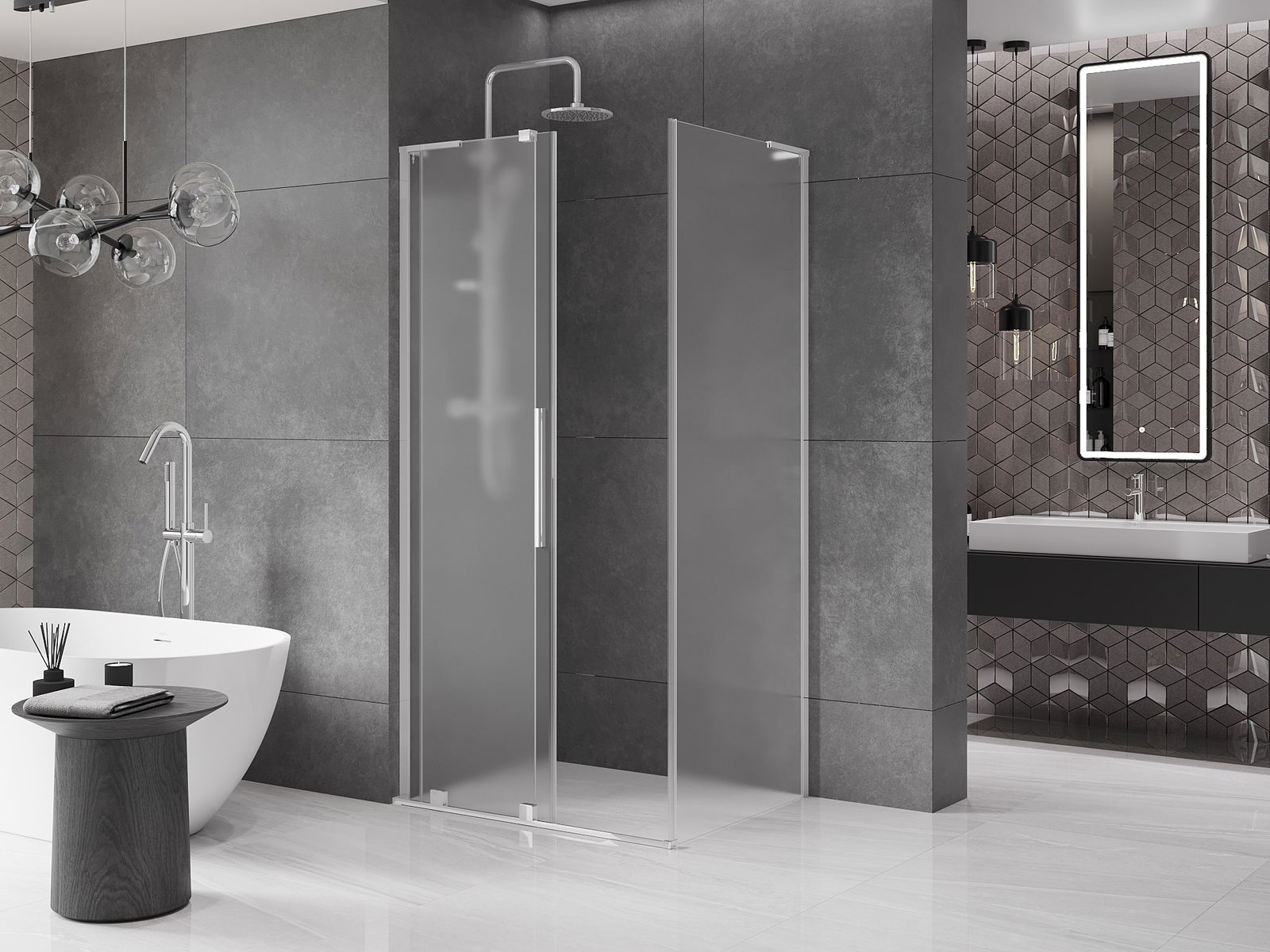 Mexen Velar L cabine de douche coulissante 100 x 90 cm, givre, chrome - 871-100-090-33-01