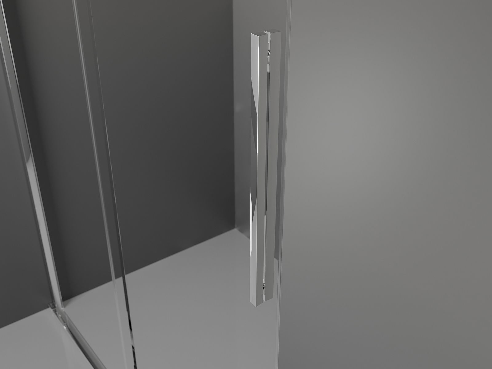 Poignée pratique et confortable en acier inoxydable. La forme moderne associée à une finition assortie à la couleur des profilés confère à l'ensemble un aspect moderne et élégant, soulignant l'esthétique de chaque salle de bain.