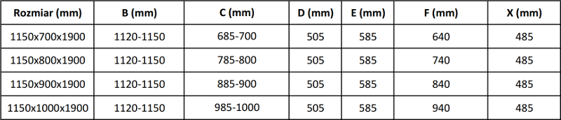 Dimension: 115x100 cm (portes 115 cm. paroi 100 cm)