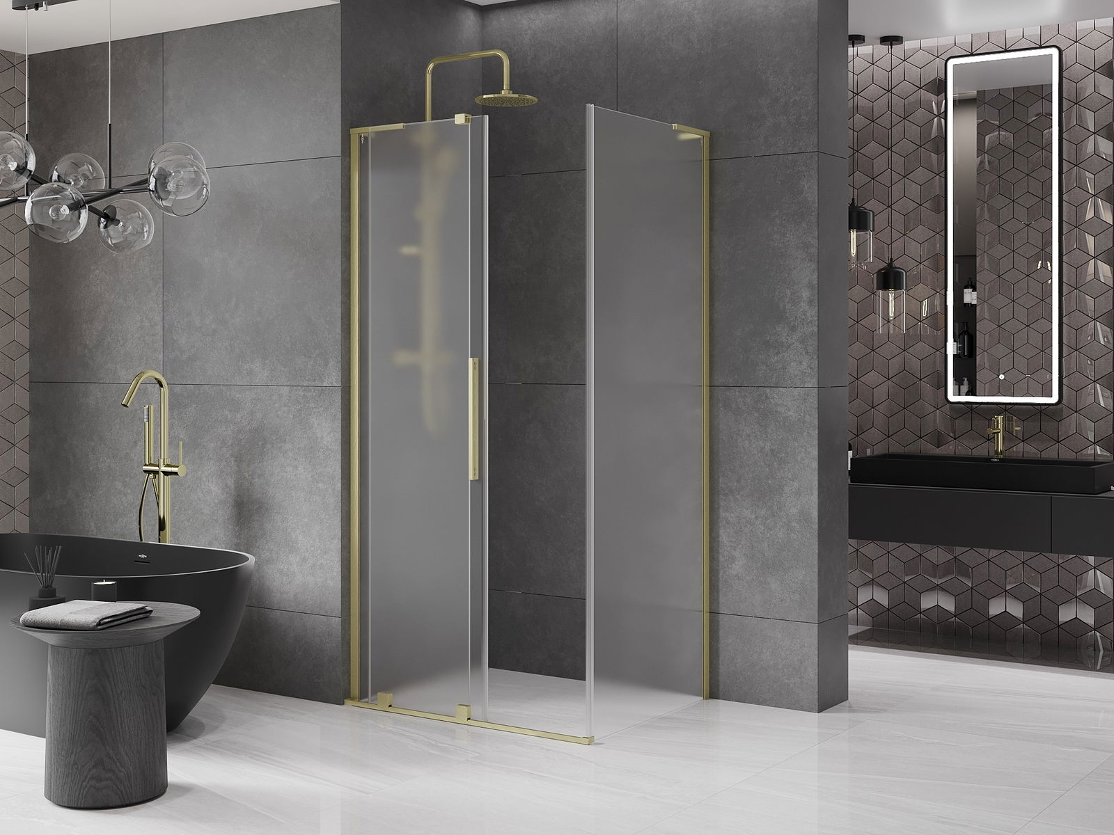 Mexen Velar L cabine de douche coulissante 90 x 120 cm, givrée, or brossé - 871-090-120-33-55
