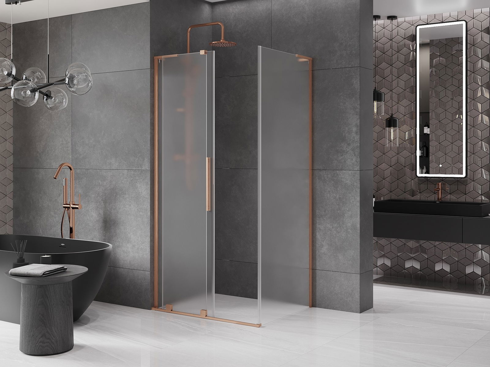 Mexen Velar L cabine de douche coulissante 90 x 80 cm, givrée, cuivre brossé - 871-090-080-33-65