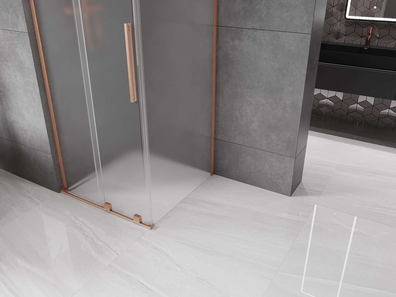 Mexen Velar L cabine de douche coulissante 110 x 110 cm, givre, cuivre brossé - 871-110-110-33-65