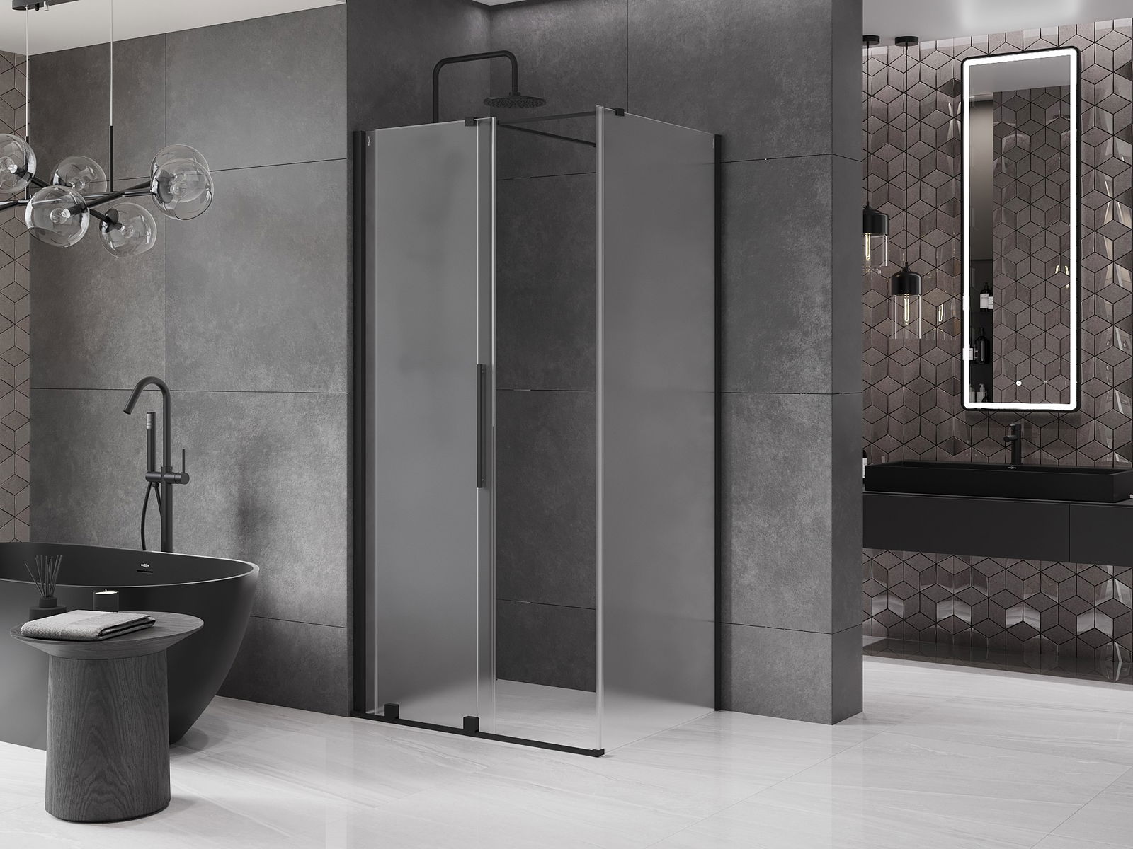 Mexen Velar cabine de douche coulissante 140 x 100 cm, givrée, noire - 871-140-100-31-70