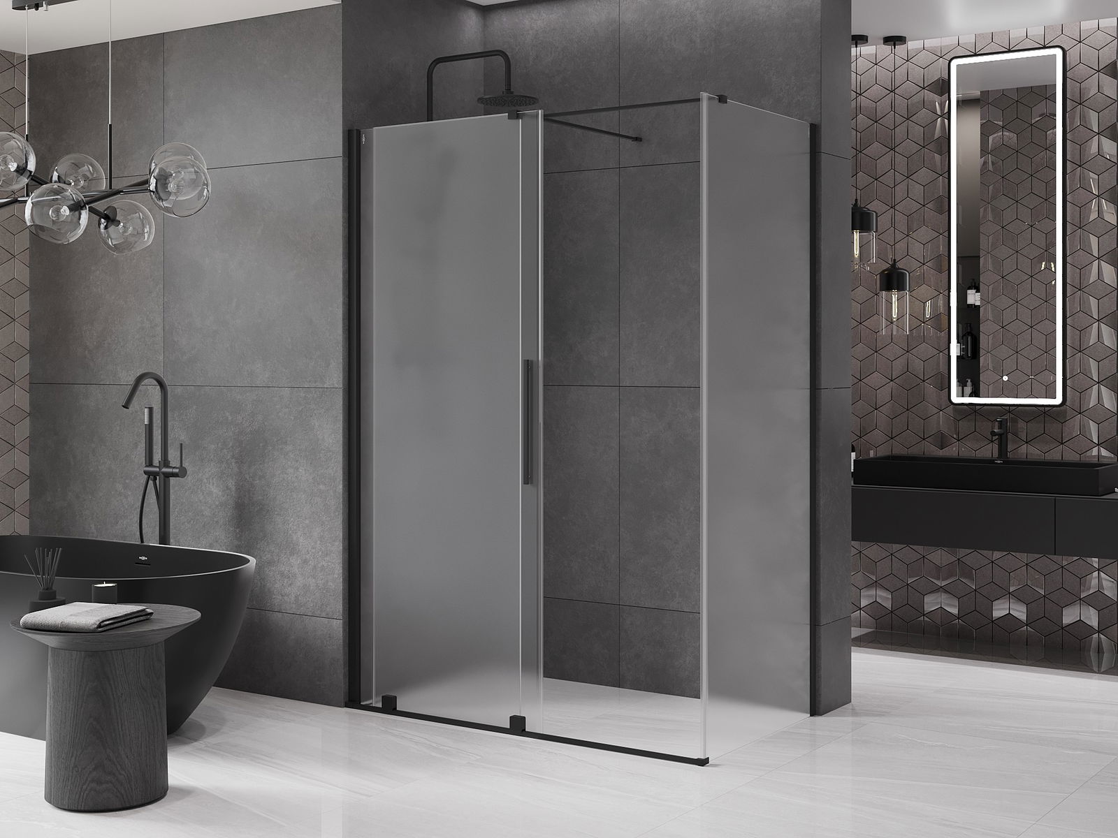 Mexen Velar cabine de douche coulissante 150 x 75 cm, givrée, noire - 871-150-075-31-70