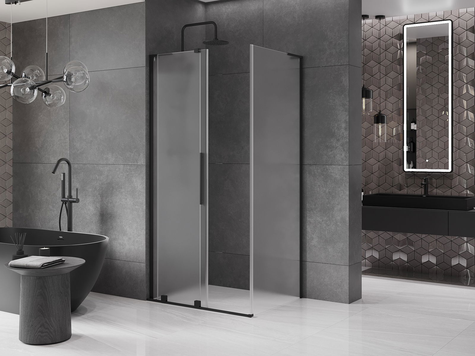 Mexen Velar L cabine de douche coulissante 110 x 85 cm, givrée, noire - 871-110-085-33-70