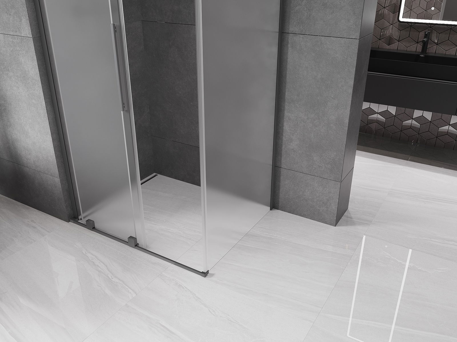 Mexen Velar L cabine de douche coulissante 90 x 75 cm, dépoli, métal gun - 871-090-075-33-95