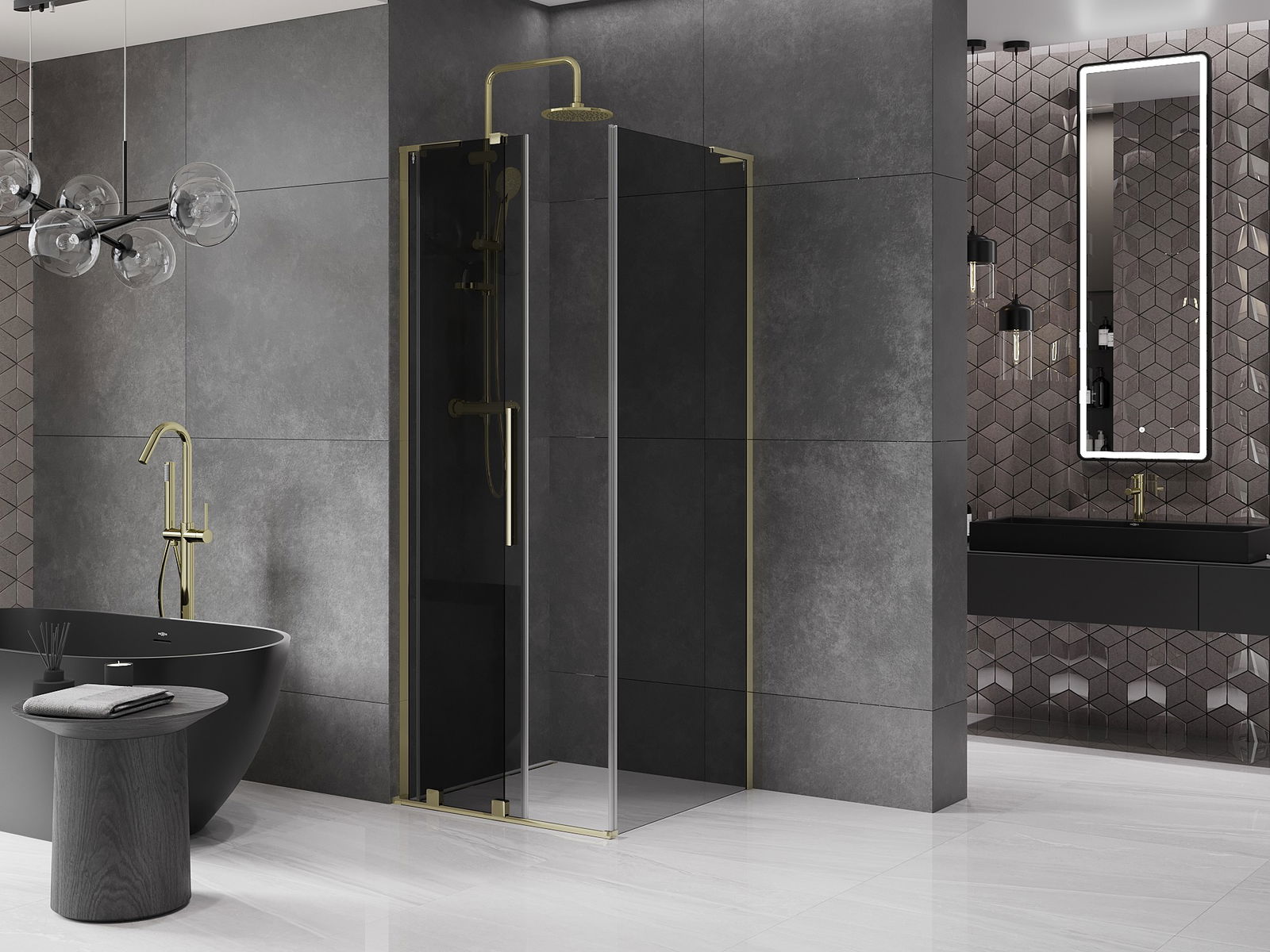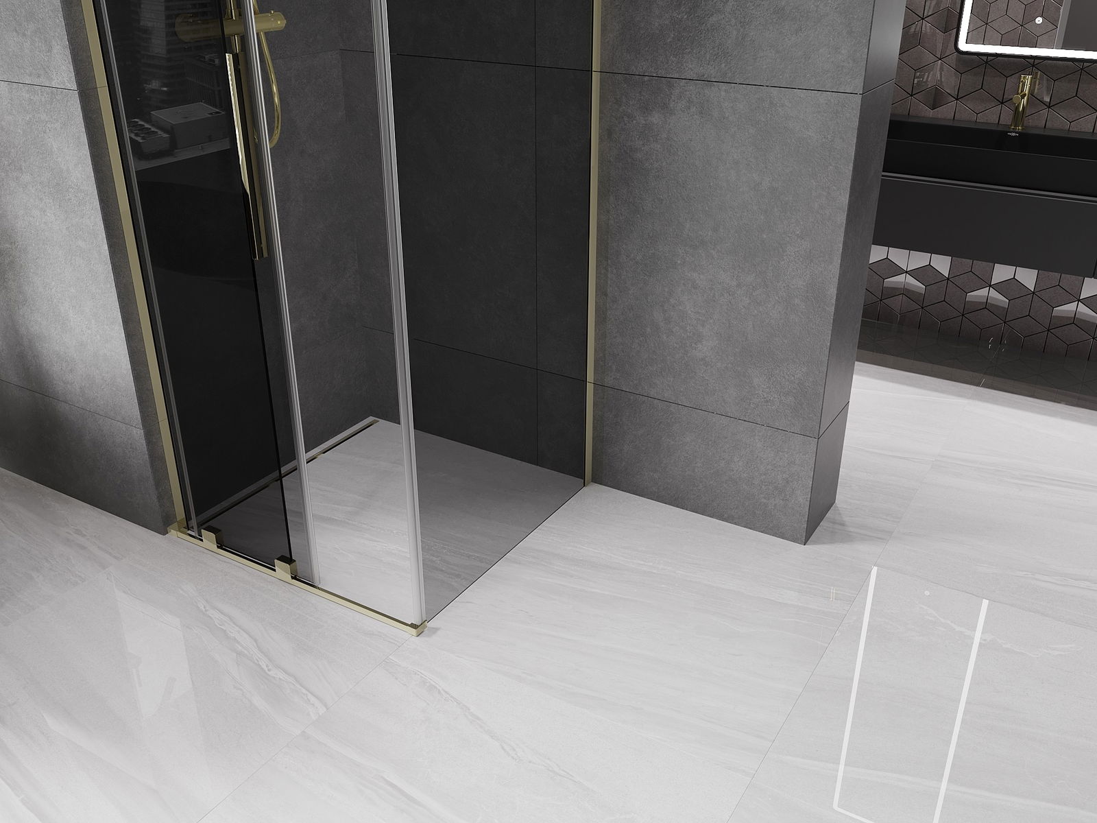 Mexen Velar L cabine de douche coulissante 100 x 100 cm, graphite, or - 871-100-100-43-50