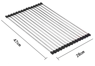 L'égouttoir est exceptionnellement facile à ranger – s'il n'est pas nécessaire, il suffit de le rouler. De cette façon, lorsqu'il est plié, il prend peu de place et peut même tenir dans un petit placard ou tiroir. Une solution idéale pour les petites cuisines.