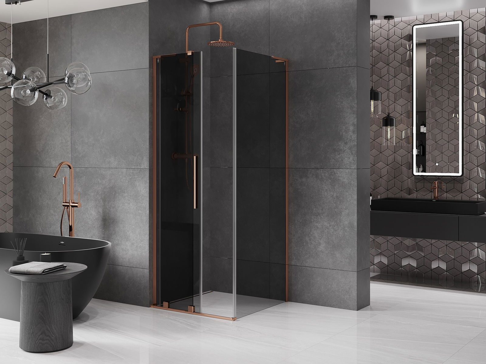 Mexen Velar L cabine de douche coulissante 110 x 110 cm, graphite, or rose - 871-110-110-43-60