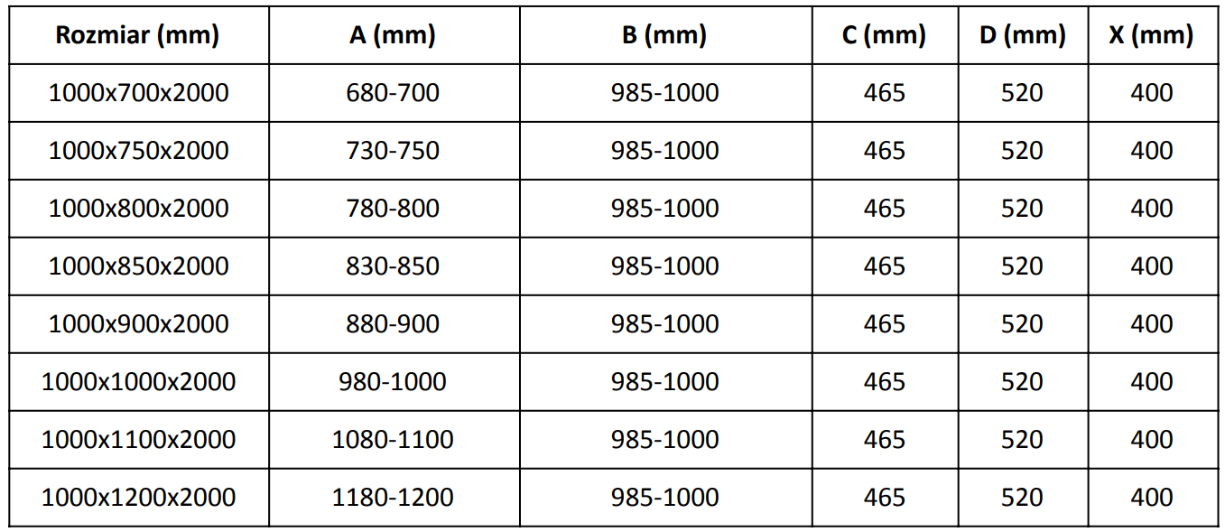 Taille : 100x85 cm (porte 100 cm, paroi 85 cm)