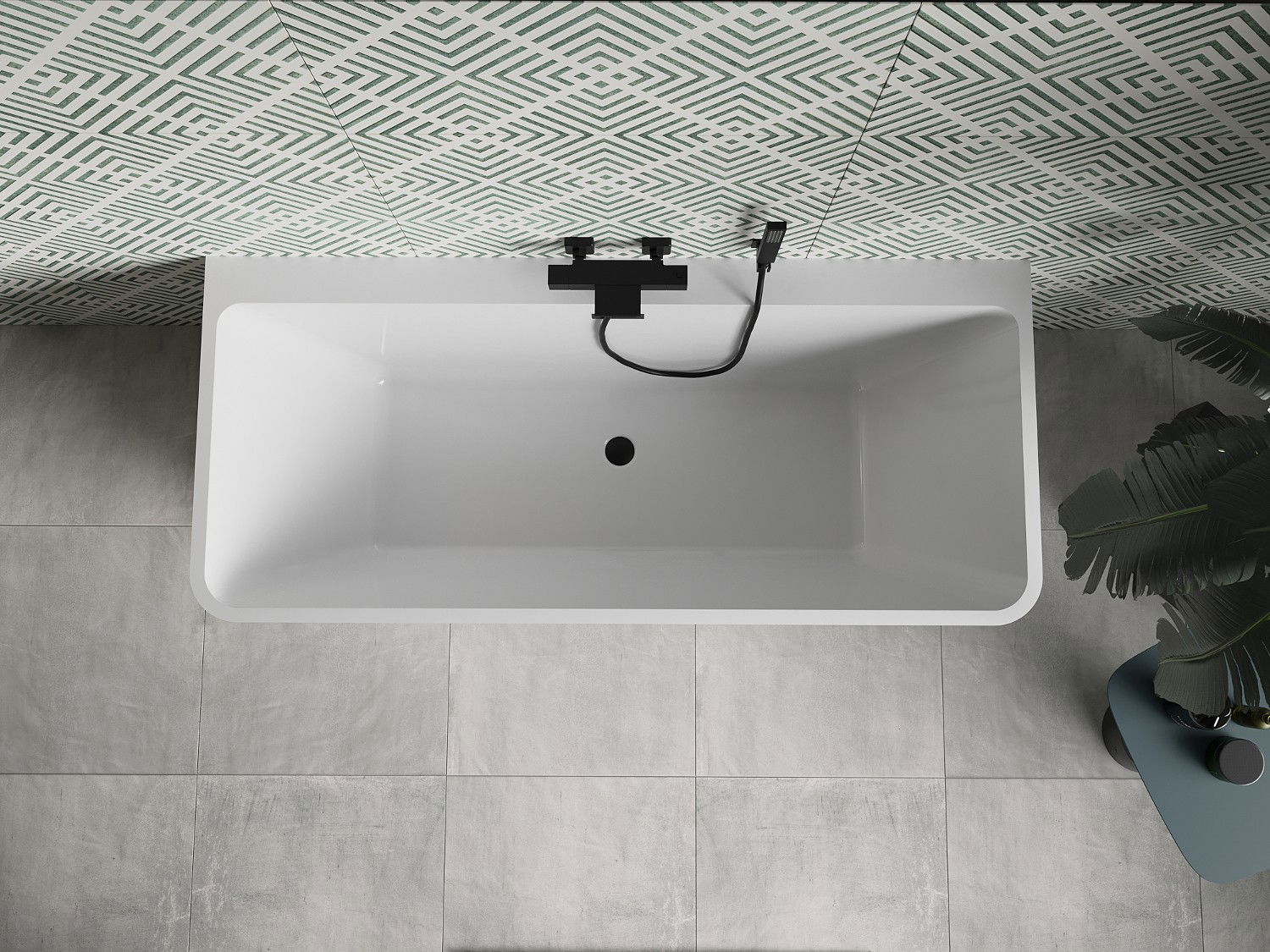 Mexen Volta baignoire îlot adossée 150 x 75 cm, blanc/noir, trop-plein noir - 51131507575-70