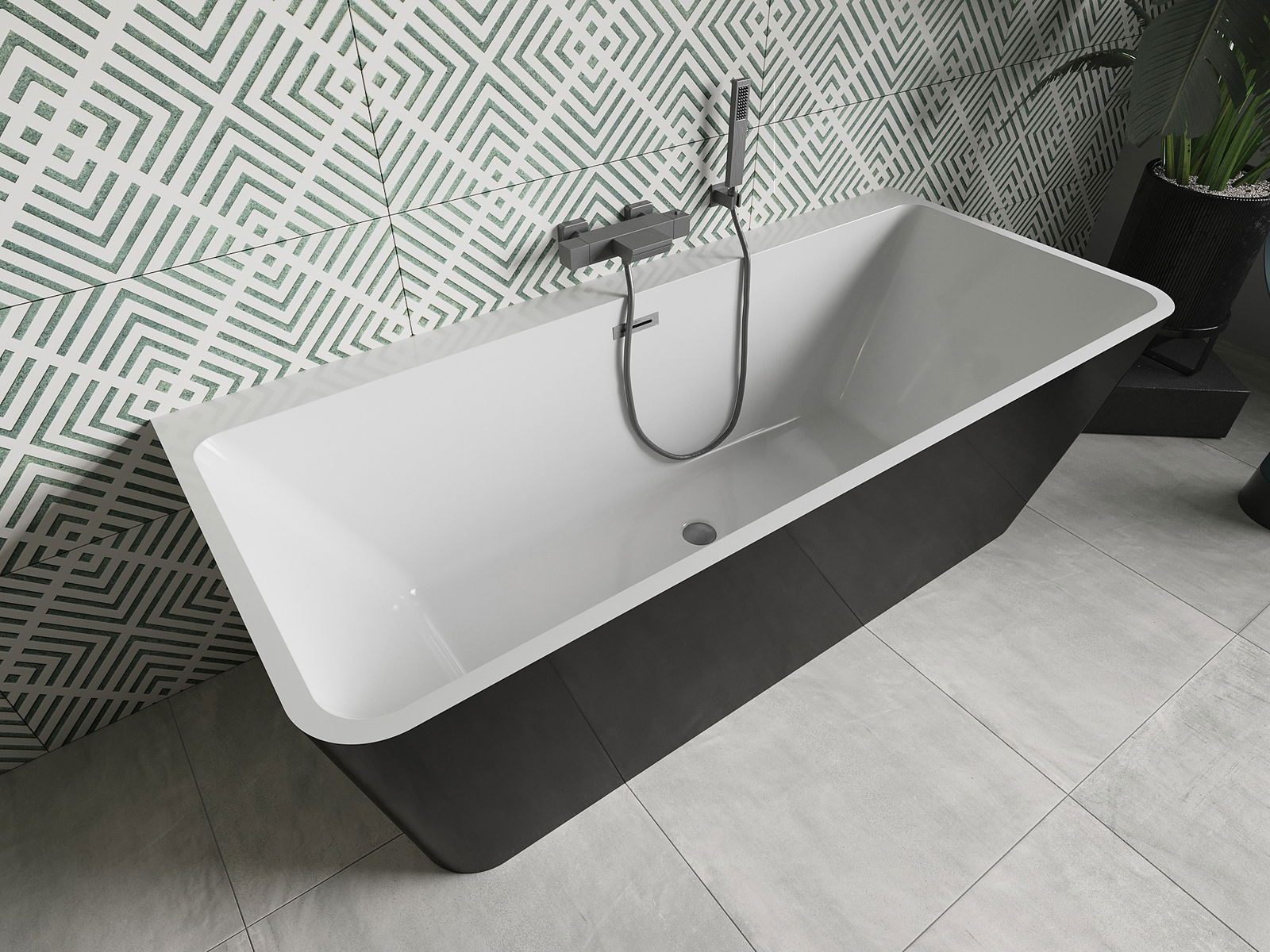 Mexen Volta baignoire autoportante murale 170 x 75 cm, blanc/noir, trop-plein gun gray brossé - 51131707575-66
