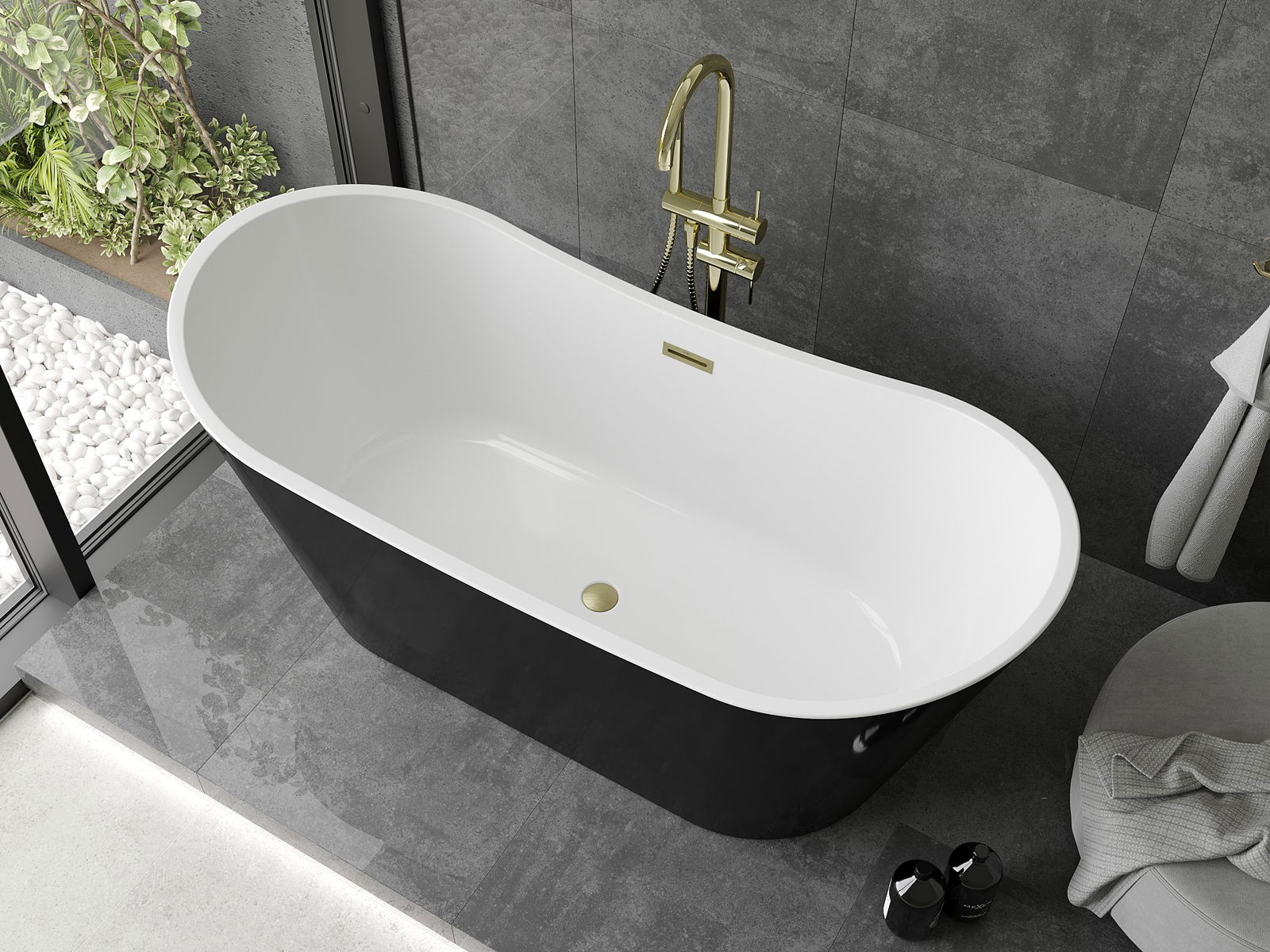 Mexen Montana baignoire autoportante 150 x 75 cm, blanche/noire, trop-plein or brossé - 52011507575-55